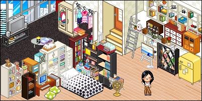 ห้องนี้เป็นห้องแรกที่สร้างคร๊า..เป็นห้องพักธรรมดาที่ตั้งอยู่บนชั้นดาดฟ้าหรืออะไรนั้นแหละ ชอบห้องนี้เพราะมันโครตส่วนตัวเลยมีตู้หนังสือ ตู้ใส่ของ ทีวี โต๊ะทำงานครบเจ้าคร๊า
