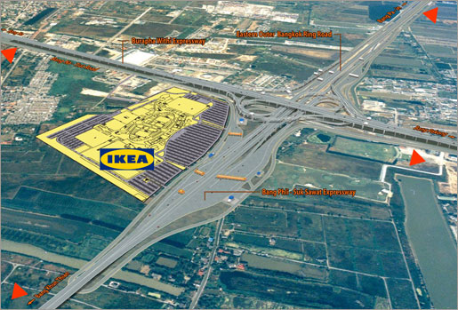 IKEA BANGNA is located on southwestern corner of Bangna-Trad Road and Eastern Ring Road: Bangplee-Suksawat Expressway intersection in Bangkaew District, Samutprakarn Province.