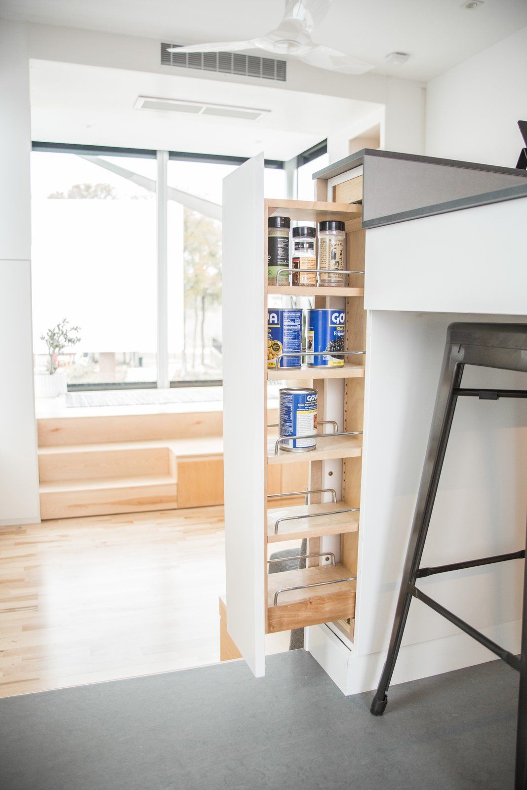 While the units are small in space, numbers alone do not define the Kasita experience. "One of the biggest hurdles is the perverse relationship the general public has in mind with housing value and square footage," says Whitsett. "We really try to turn the question [to be] about better square feet than total square feet. We focus on quality of square space and experience." With 10,000 hours invested into Kasita’s design, "We worked really hard to utilize every cubic inch of living space," he says.