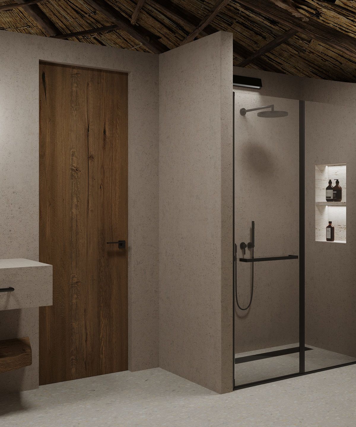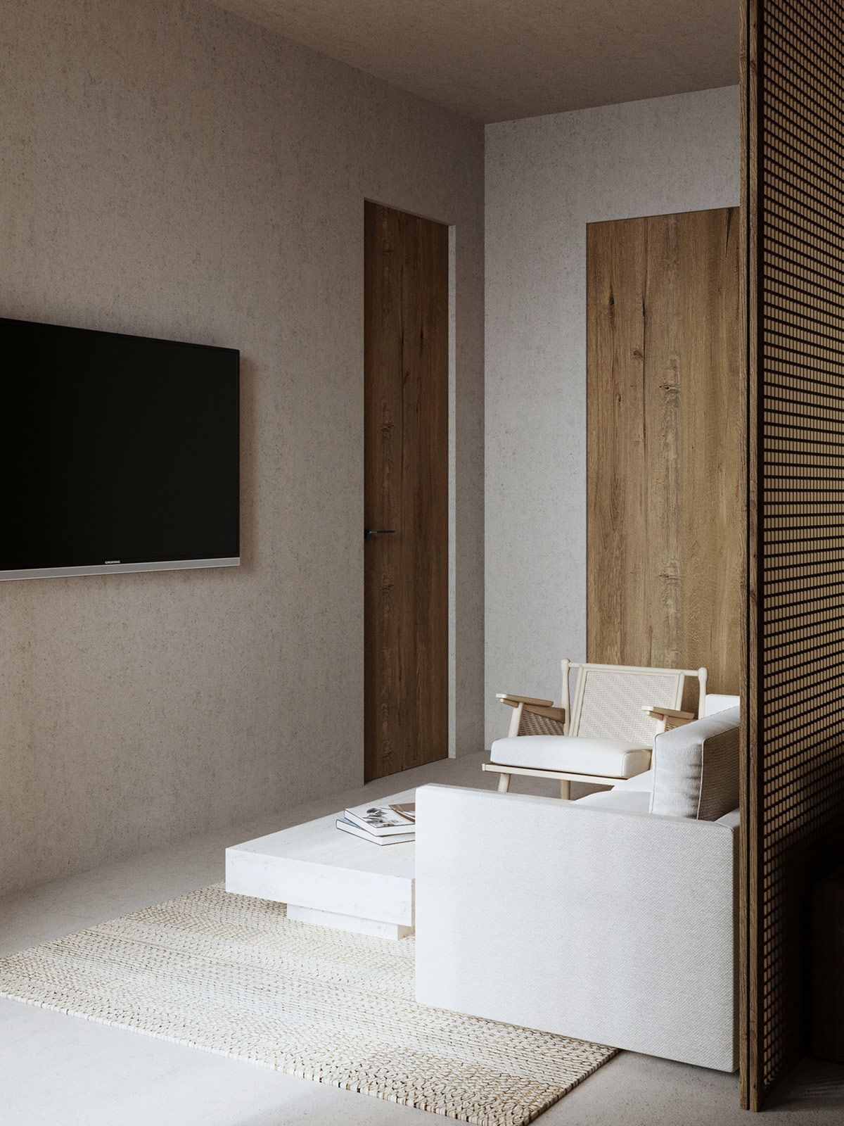 Interior walls are rendered in lime to achieve a smooth, laconic result.