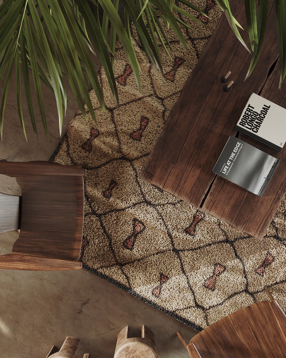 Our first rustic home design, in the Turks and Caicos Islands, offers a large and airy rustic style interior that’s clad in textured lime stucco. A patterned living room rug complements the light wall treatment, whilst pulling in darker tones from the rustic wooden furniture.