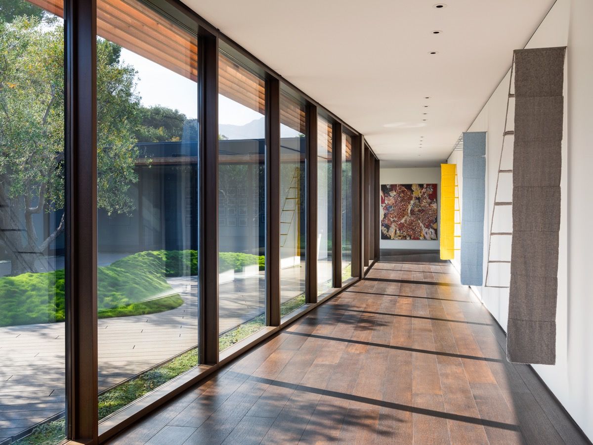 A feature staircase and terraces rise from the natural contours of the hillside, smoothly integrating the two acre site into the beauty of the state park. Inside, an open two story void is furnished with the main living spaces and a stunning staircase over a reflecting pool. Vast windows pour in sunlight and breathtaking vistas.