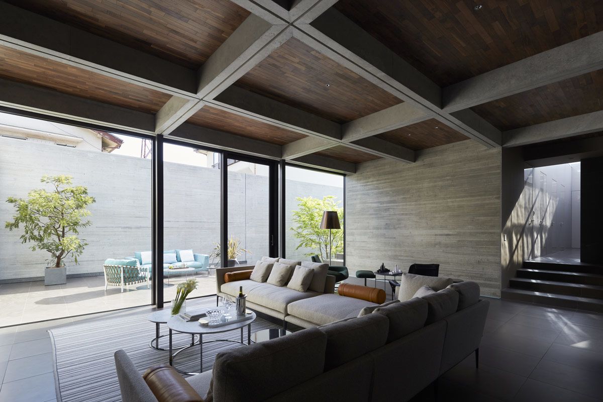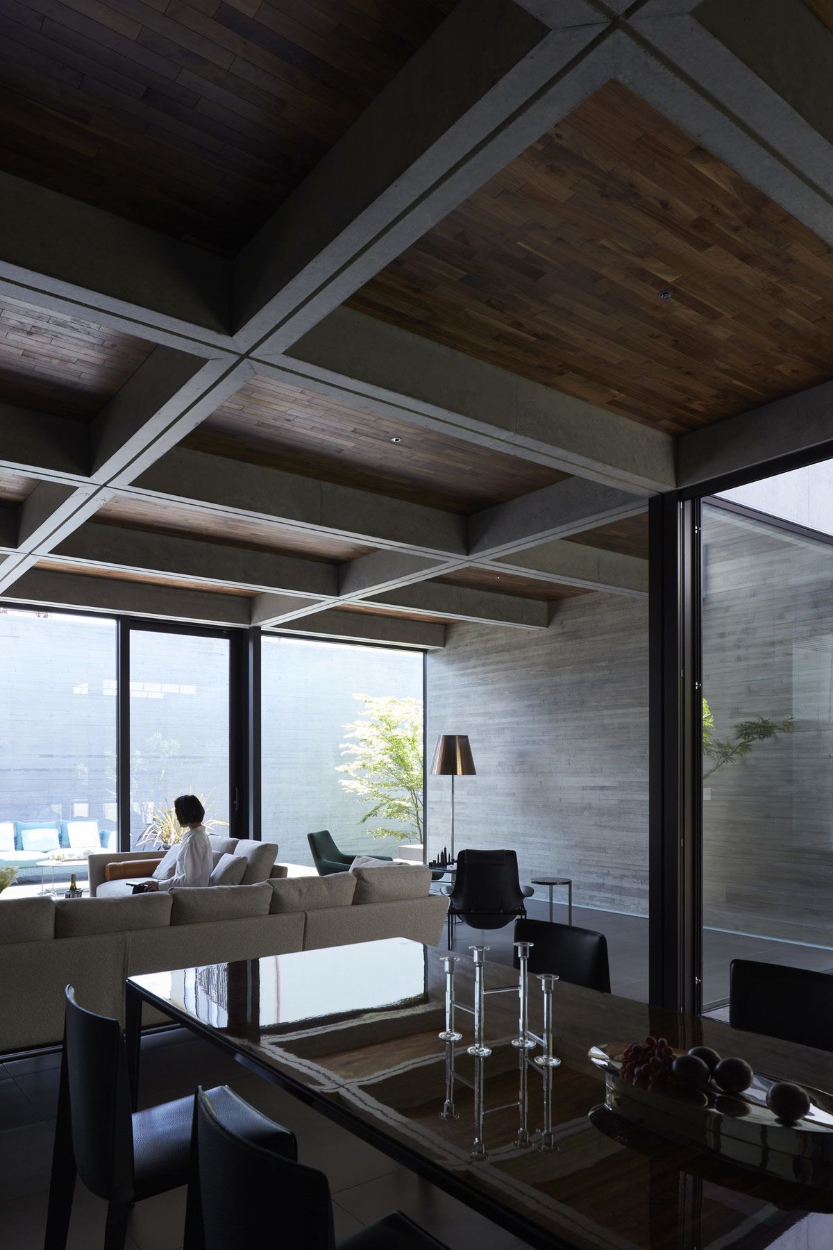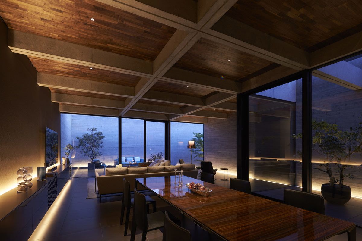 A modern brutalist exterior blankly encases this exquisitely detailed Japanese home, expertly designed by Apollo Architects & Associates. The 410 square metre property is located in a quiet suburban neighbourhood in the densely populated Kanto region. The homeowners acquired this tiered and irregularly shaped lot with meaningful family time in mind.