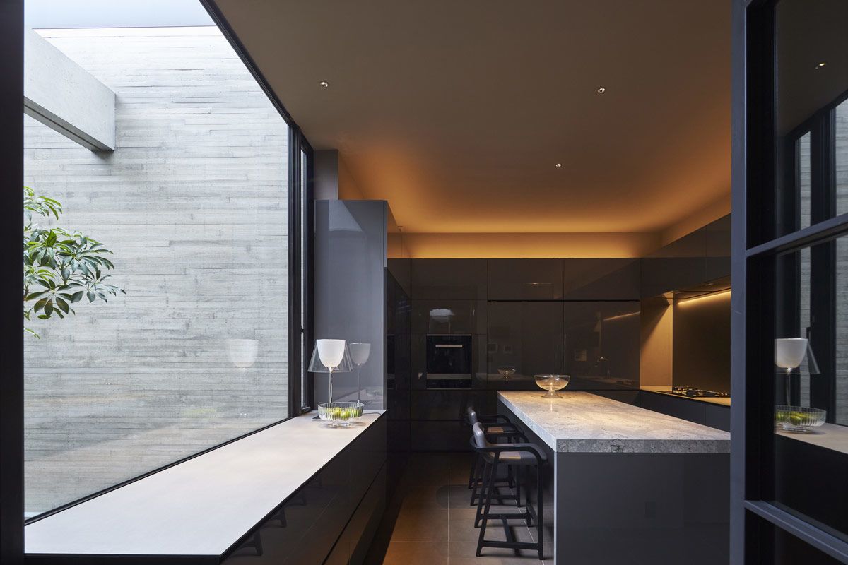 The small courtyard affords the kitchen an outdoor view.