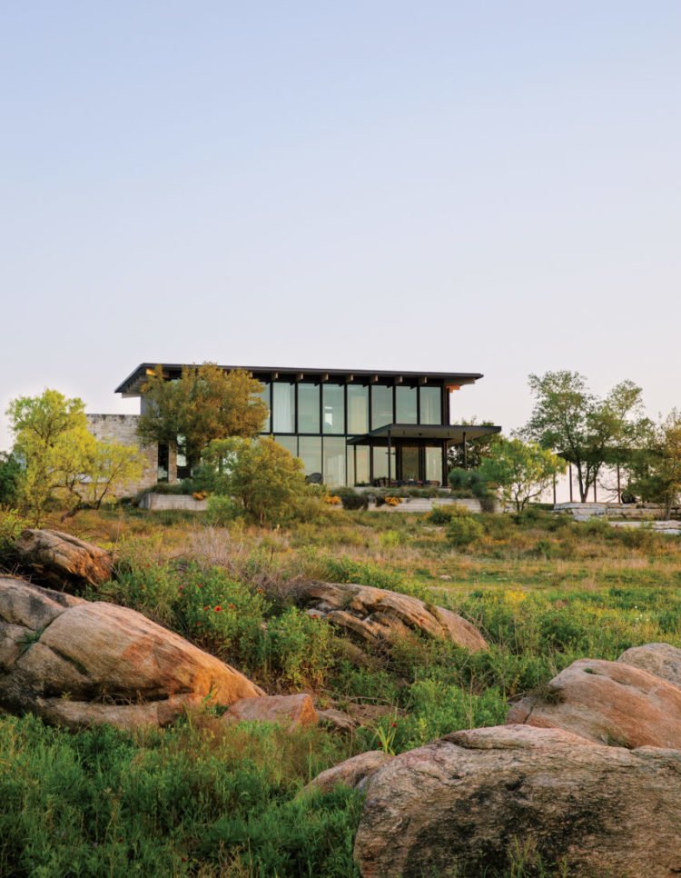 Bart Knaggs is fifty years old and had dreamt of a weekend home on Lake Llano outside of Austin, Texas where he’d grown up fishing. He is an entertainment and hospitality entrepreneur who, for one, is responsible for founding the Austin City Limits Music Festival. He is also co-owner of a number of popular hotels and restaurants. When he finally locked in on 47-acres of waterfront property, a fish camp was put up, basic and purpose serving. But in 2014, Knaggs and his wife Barbara built their dream home, a glass box that overlooks the lake. It is elegant and in perfect harmony with all that nature has to offer around them. This is the only home like it for miles and although it looks super-modern, it is described as all you feel is the space around you – it is so open and airy. They are thoroughly enjoying the relaxation they get from the home and as avid as a fisherman as he was, he says now he doesn’t think about fishing as much, but just enjoying the home. Michael Hsu is the architect who was enlisted to help pull of this beautiful design and, yes, it worked.