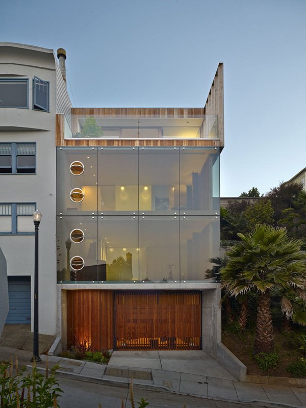 A San Francisco couple wanted something unique for their home, and that is what they got. With limited space to build their home, a small, 1,800 foot steep lot, they decided to get creative and build their home upward, like a tower. They decided on a glass house tower home so that they could enjoy the views of the city, but also wanted it private. They came up with the idea to use a system of moveable louvres which they had made out of cypress wood. They angled them so that you can take in the view from inside the home, but outsiders cannot peer into the home. Porthole windows were also installed into the glass walls to help ventilate the home in a very unique way, and to save on space, the kitchen on sports a roof over a portion of the room so that they enjoy a bit of the outdoors during the warm months, and cover the open space with fabric, during the cold, or wet months. This glass tower home is not only an example of how to be creative with a small lot, but to be creative with designing a work of art for a home.