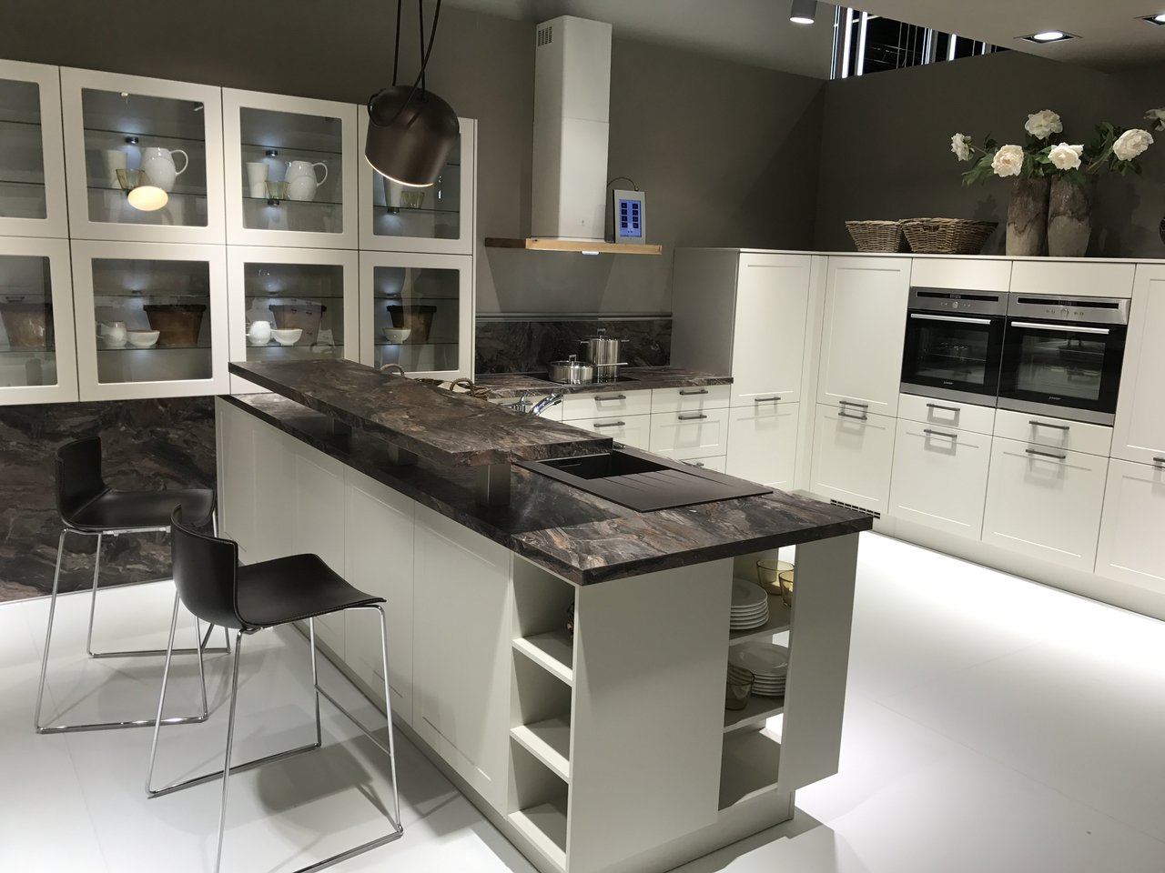 Frosted glass is sleek and cool and it looks great in modern kitchens. But while frosted glass does hide the mess behind it pretty well, it’s not completely opaque so you might still be able to distinguish the silhouettes and colors behind it.