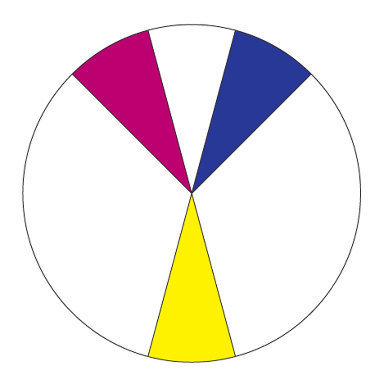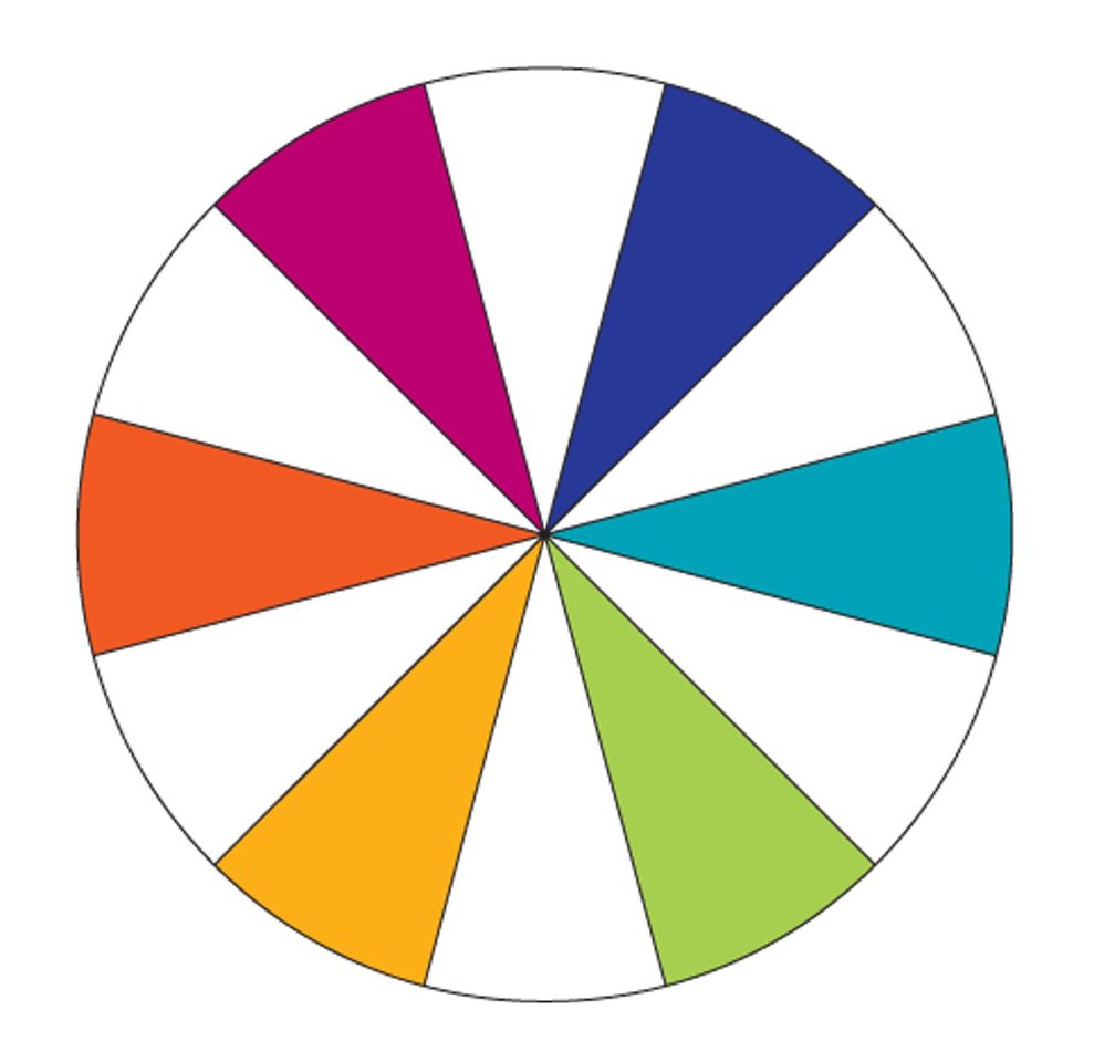 You can rely on the color wheel's segmentation to help you mix colors and create palettes with varying degrees of contrast. There are four common types of color schemes derived from the color wheel.