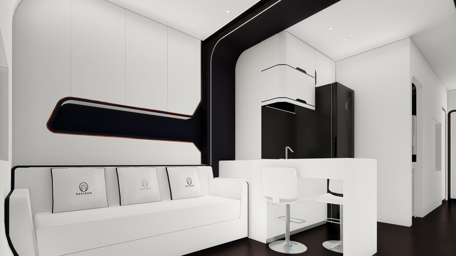 Law sees the prospective Cube Two X client as a tech head who loves the idea of a futuristic living environment. If the cinematic worlds of Stanley Kubrick’s 2001: A Space Odyssey and William Hanna and Joseph Barbera’s The Jetsons were combined to create a tiny home, it might just be Nestron’s Cube Two X. "I think tech lovers and digital nomads are going to love this innovation," Law says.